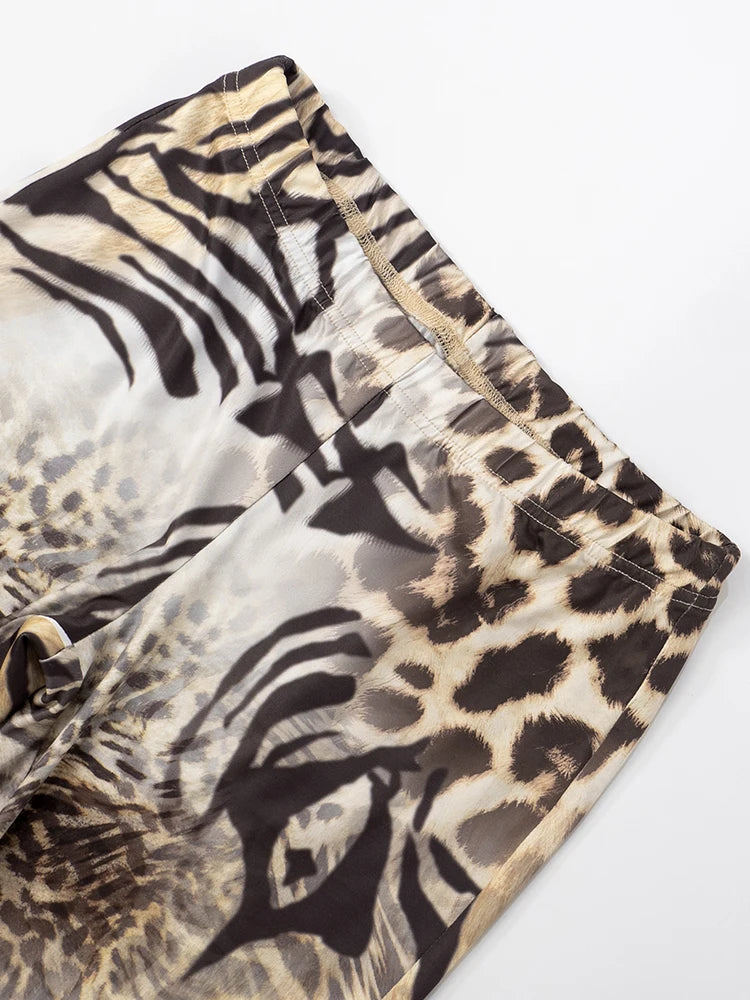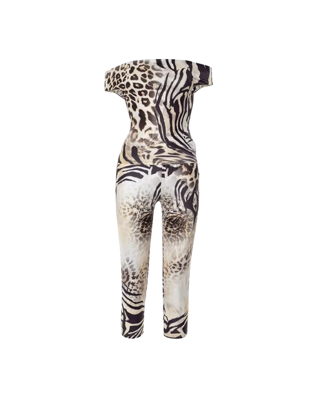 The Savage Muse Set brings the wild vibes with a mix of bold animal prints and a body-hugging fit. This two-piece set features an off-the-shoulder top and matching capri pants. The fabric is ultra-stretchy with no zippers or buttons—just pull it on and go. Designed to flatter curves and show off just the right amount of skin.