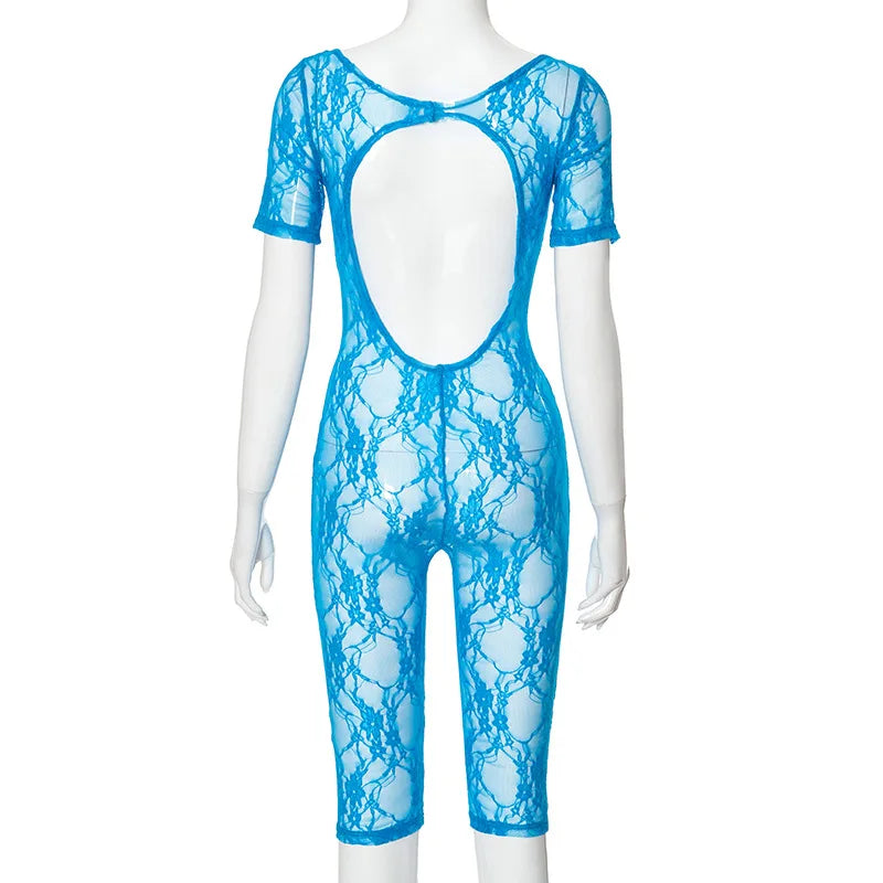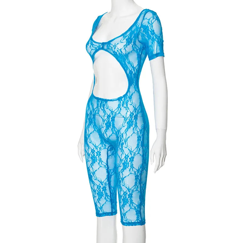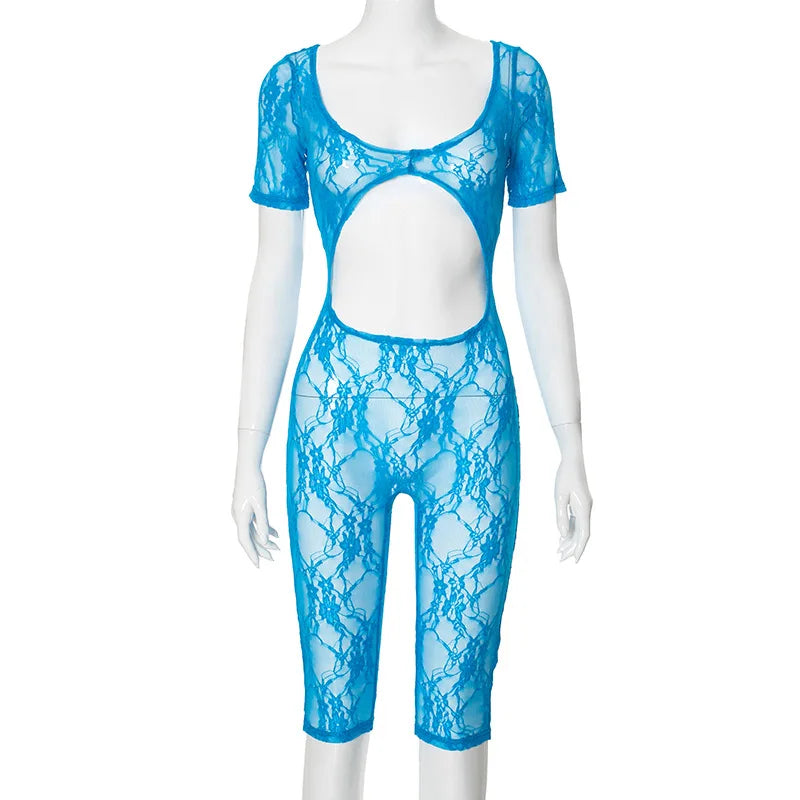 Work It Out Short Sleeve Cutout Lace Romper