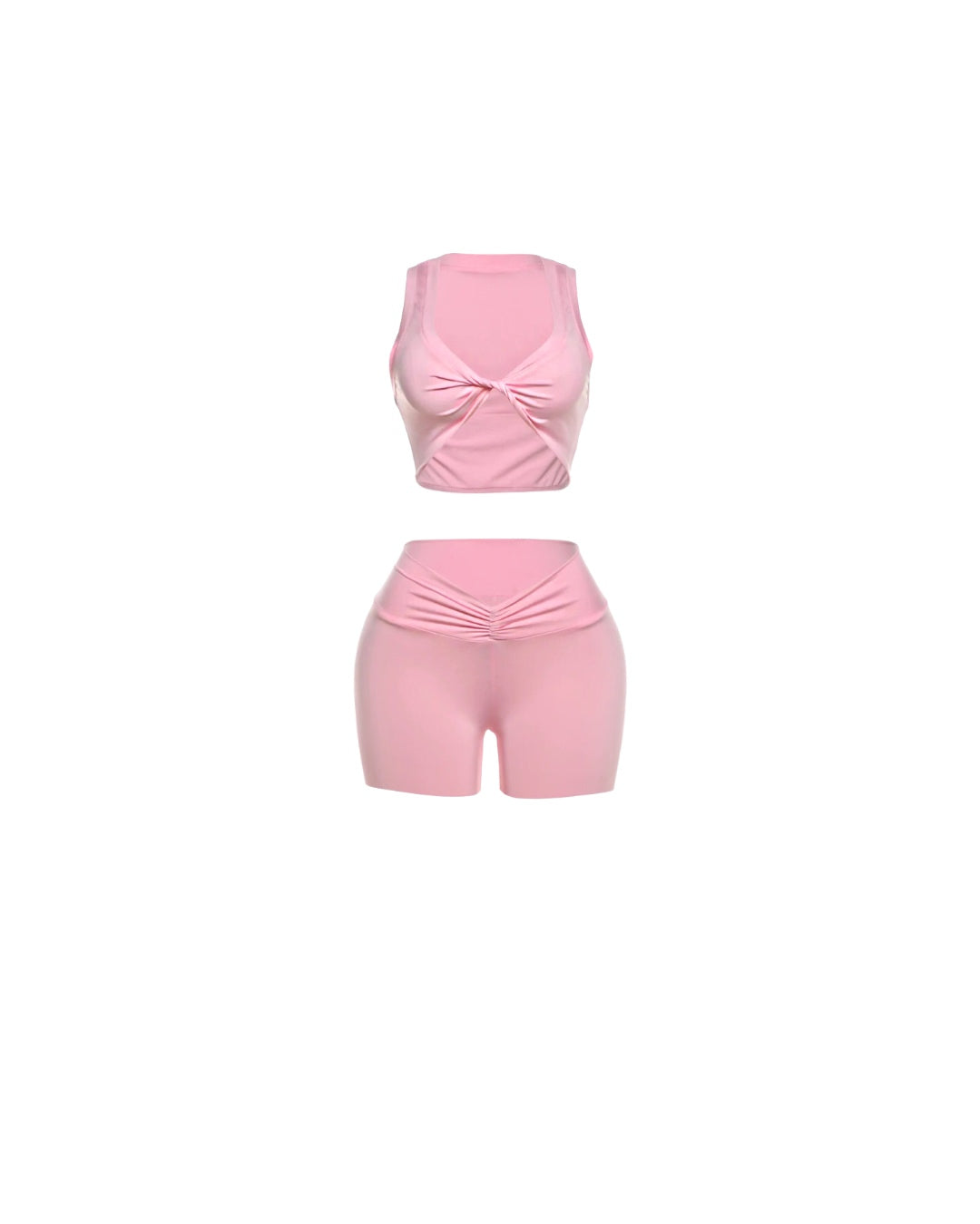 Twist front crop top and v-dipped shorts