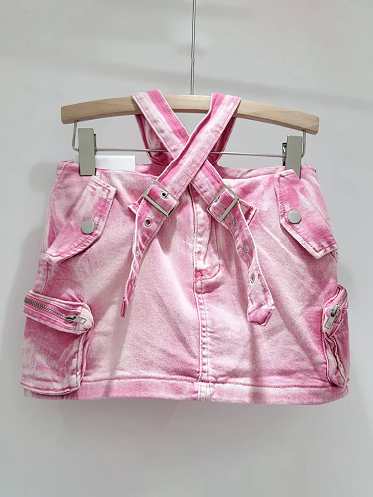 Denim Cross Belt Mini Skirt