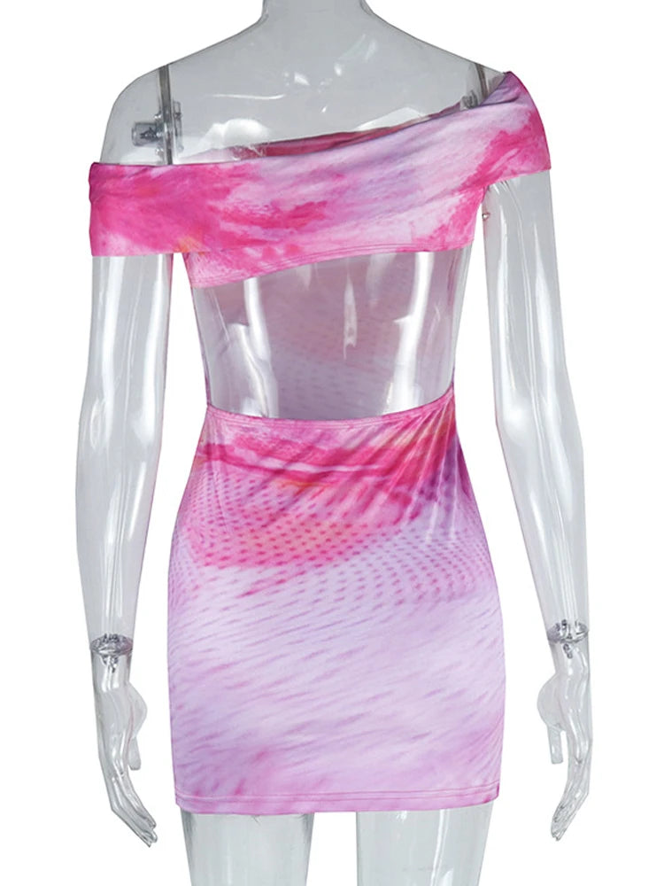 This sleeveless mini dress features a soft mesh material that hugs in all the right places. The off-the-shoulder neckline adds a touch of allure, while the gradient print creates a flawless, eye-catching look.