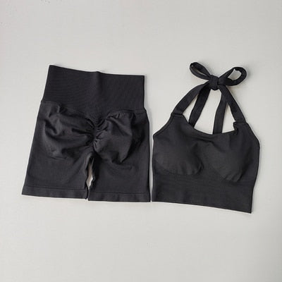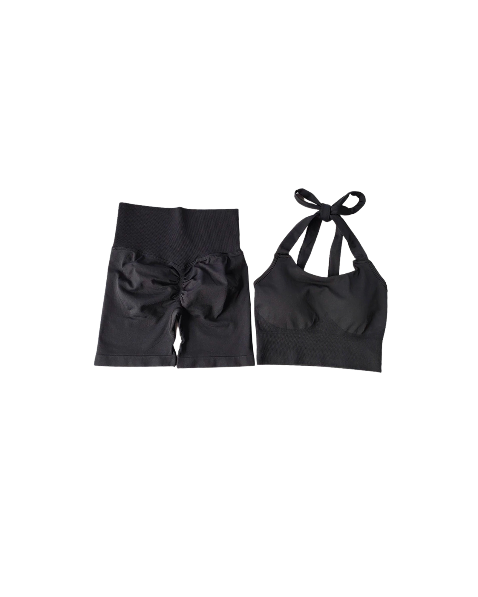 Includes halter and scrunch booty shorts