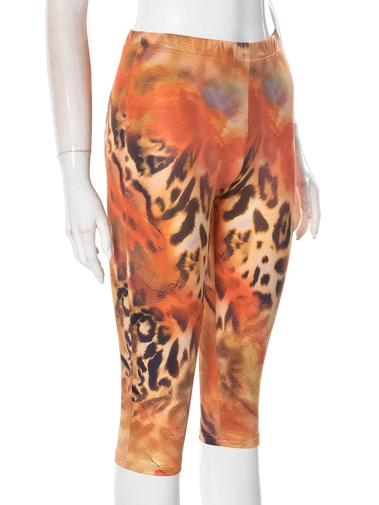 Make a statement in the Sahara Capri Pant, where bold prints and effortless comfort collide. Designed in a stretchy, body-hugging fabric, these capris feature a mixed tie-dye leopard print that brings an edgy, eye-catching vibe to your wardrobe. The elastic waistband ensures a comfortable, pull-on fit with no closures, making them as easy to wear as they are stylish.