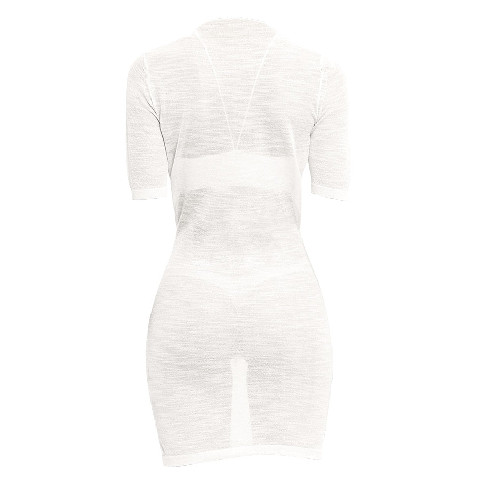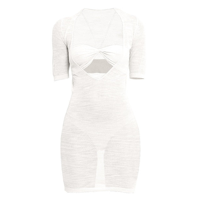 • Semi sheer celebrity inspired mini dress cover up