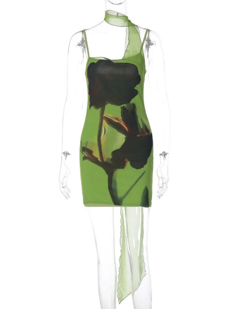 Our Jessenia Mini dress has an attached mesh scarf for a playful twist on a classic look. Stretchy and comfortable with adjustable straps, this sleeveless mini dress requires no closures for easy on-and-off. Perfect for a fun and effortless outfit!