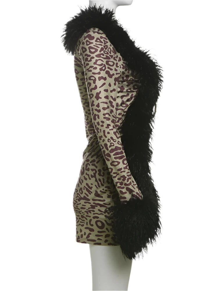 Unleash your bold side with the Wild Luxe Fur Mini—the ultimate statement piece for your wardrobe. This leopard-print mini dress brings fierce glamour with its soft fur accents on the cuffs and front. Featuring an open-front design with a delicate tie under the bust, it strikes the perfect balance of sexy and sophisticated. The fur cuffs at the sleeve ends add an extra touch of luxury, making this the go-to dress for nights when you want to stand out.